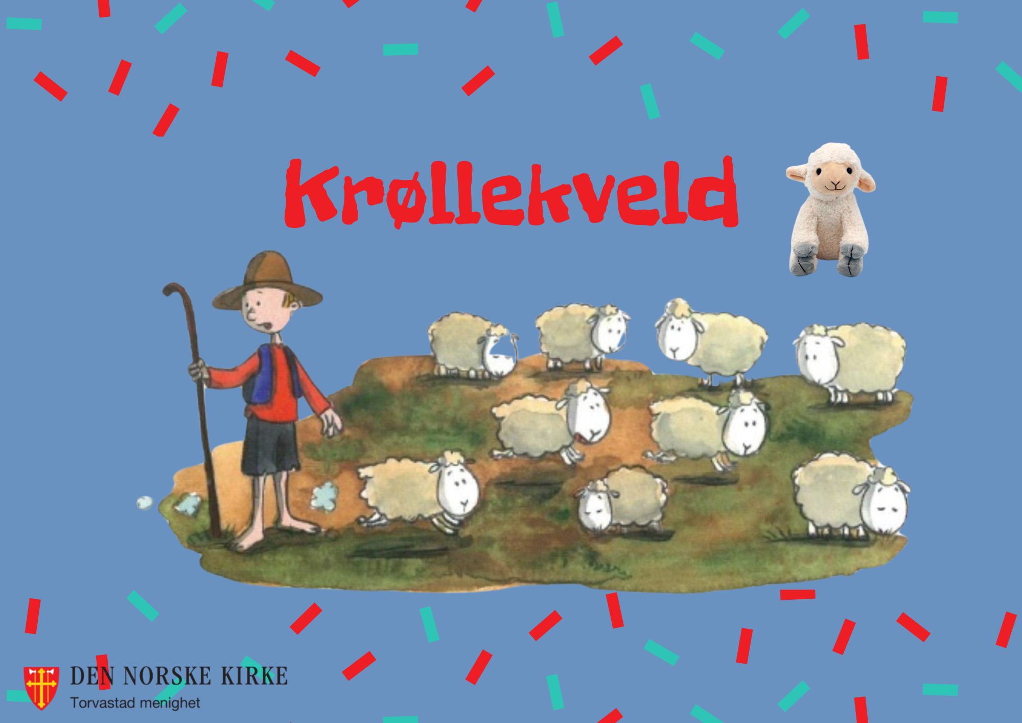 Du som har blitt 2 år, eller blir 2 år i løpet av året, inviteres til Krøllekveld i Torvastad kirke, mandag 13. oktober, fra kl. 17.00-18.30. Vi skal høre om det lille lammet Krølle som forsvant fra gjeteren sin, og vi skal synge, leke og spise kveldsmat ...